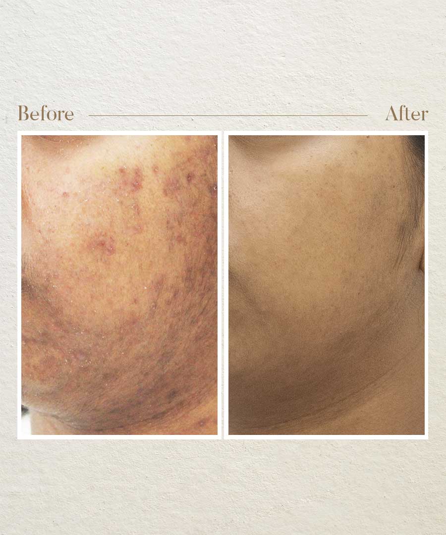 Personalized Acne Skincare Regimen: A customized skincare routine was formulated to address the patient's specific needs. This regimen likely included medicated cleansers, topical medications, and moisturizers to combat inflammation, promote healing, and prevent future breakouts.