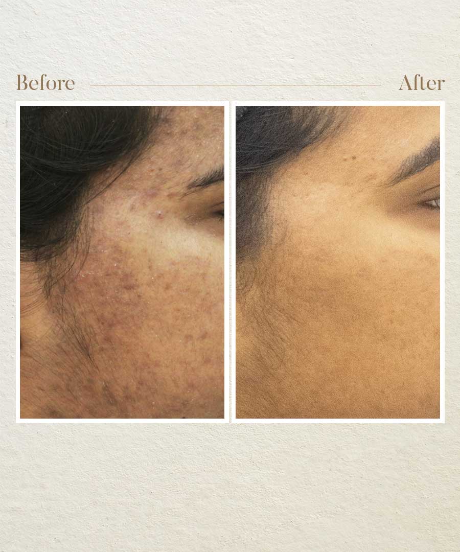 Pico Laser Therapy: To further combat active acne and address PIH (pigmentation left behind after inflammation), the patient underwent PICO laser therapy sessions at Ministry of Skin. This laser specifically targets melanin (the pigment responsible for skin color) to break down and fade hyperpigmentation caused by acne lesions.